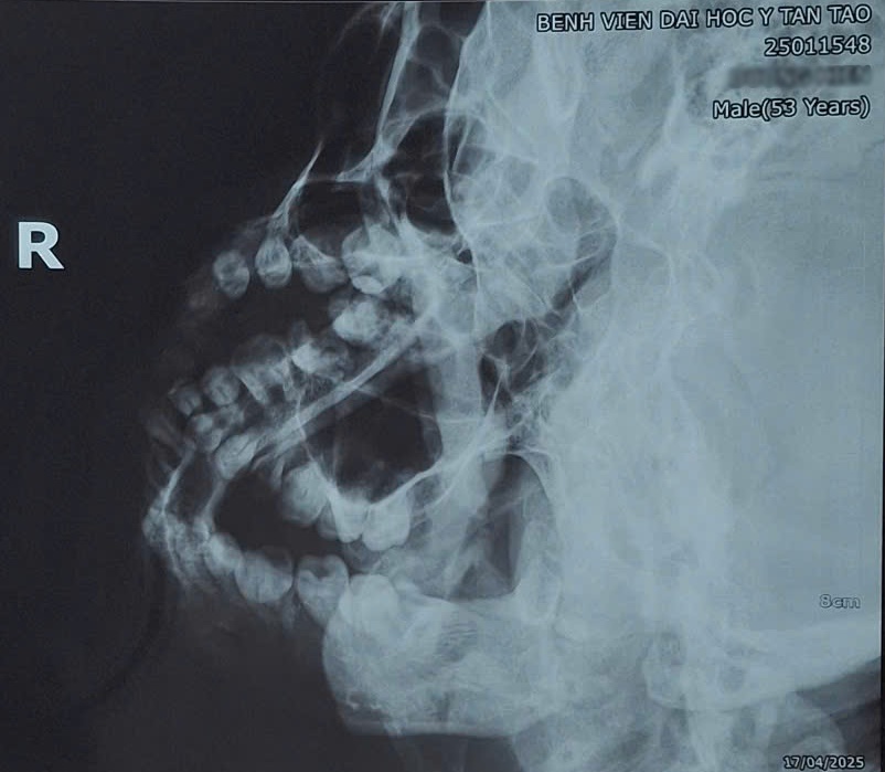 Ngày 17/4/2025, Khoa Tai Mũi Họng – Bệnh viện Đại học Y Tân Tạo tiếp nhận bệnh nhân D.H (53 tuổi, tỉnh Kiên Giang) trong trình trạng đau hàm, há rộng miệng nhưng ngậm lại rất khó và không khớp hàm.