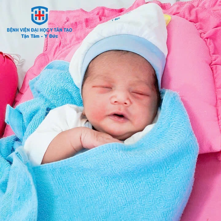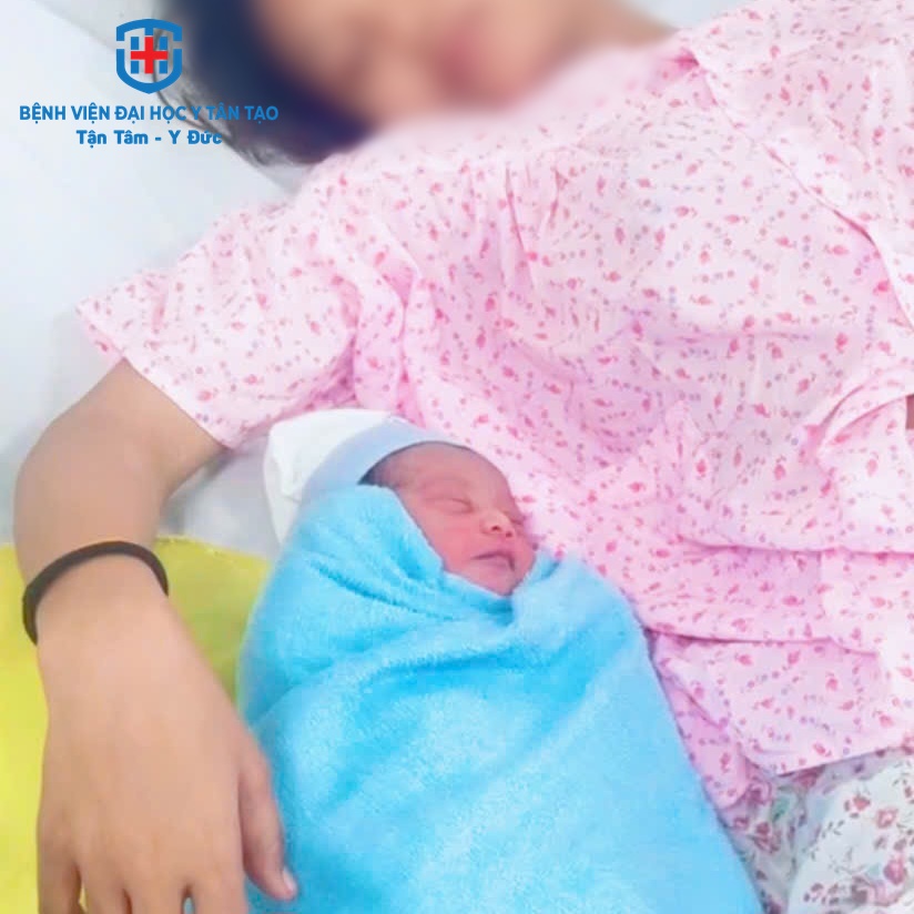Tại bệnh viện, sản phụ và bé được chăm sóc thiết yếu sau sinh và kiểm tra sức khoẻ. Em bé được da kề da với mẹ. Hiện sức khỏe của cả 2 mẹ con ổn định, bé trai nặng 2.900g, khóc to, thở đều, trương lực cơ tốt và bú tốt.