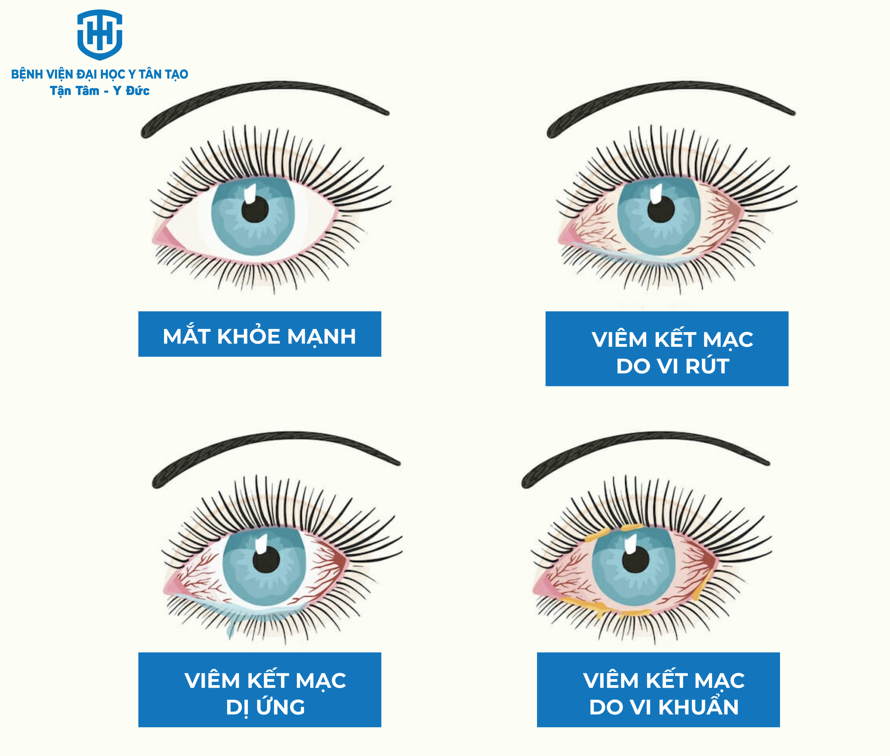 - Đau mắt đỏ do dị ứng: Thường xảy ra ở cả hai mắt. Bệnh có thể gây ngứa dữ dội, chảy nước mắt và sưng ở mắt. Có thể xảy ra với các triệu chứng dị ứng như ngứa mũi, hắt hơi, ngứa họng hoặc hen suyễn. Đau mắt đỏ do dị ứng không có khả năng lây lan.
