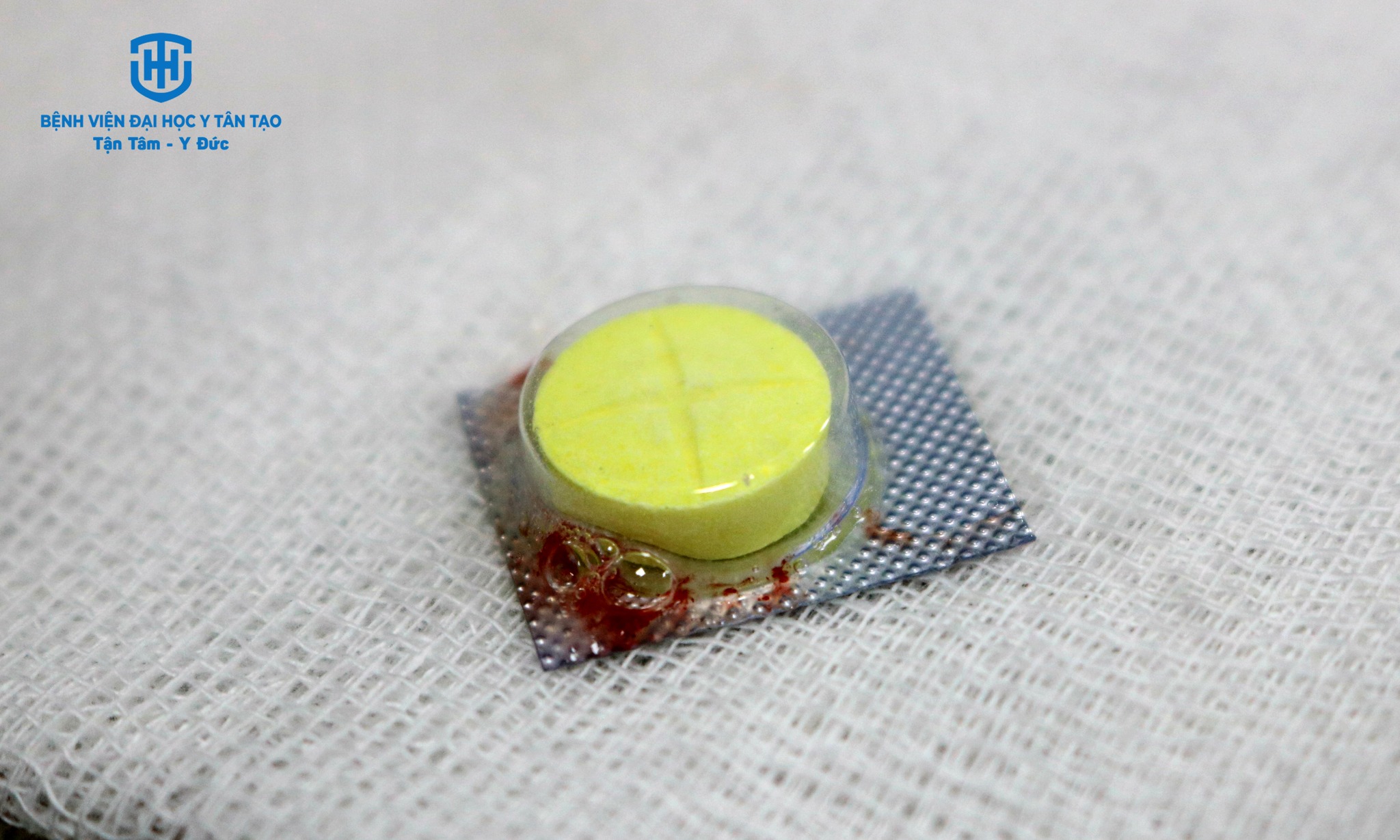Theo BS.CKI. Huỳnh Nam Tiến, dị vật được xác định là một viên thuốc còn nguyên vỏ bạc với kích thước khoảng 1,2×1,5cm với các góc nhọn, sắc rất nguy hiểm, nếu không loại bỏ kịp thời có nguy cơ gây tổn thương niêm mạc thực quản, gây xuất huyết hoặc thủng thực quản.