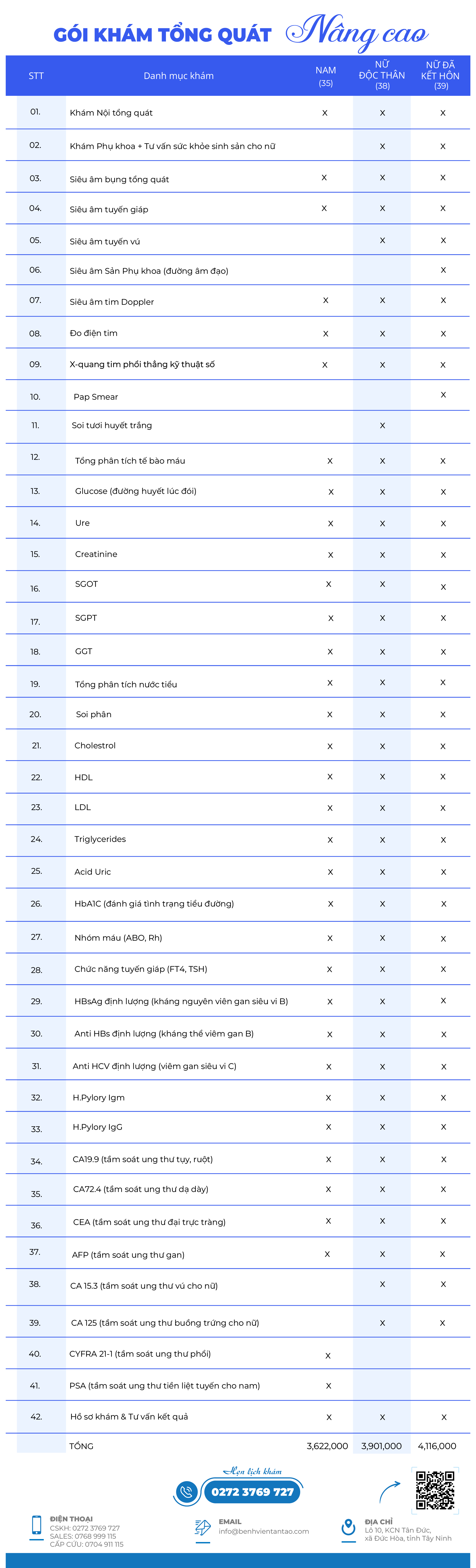 - Gói khám sức khỏe tổng quát Nâng cao