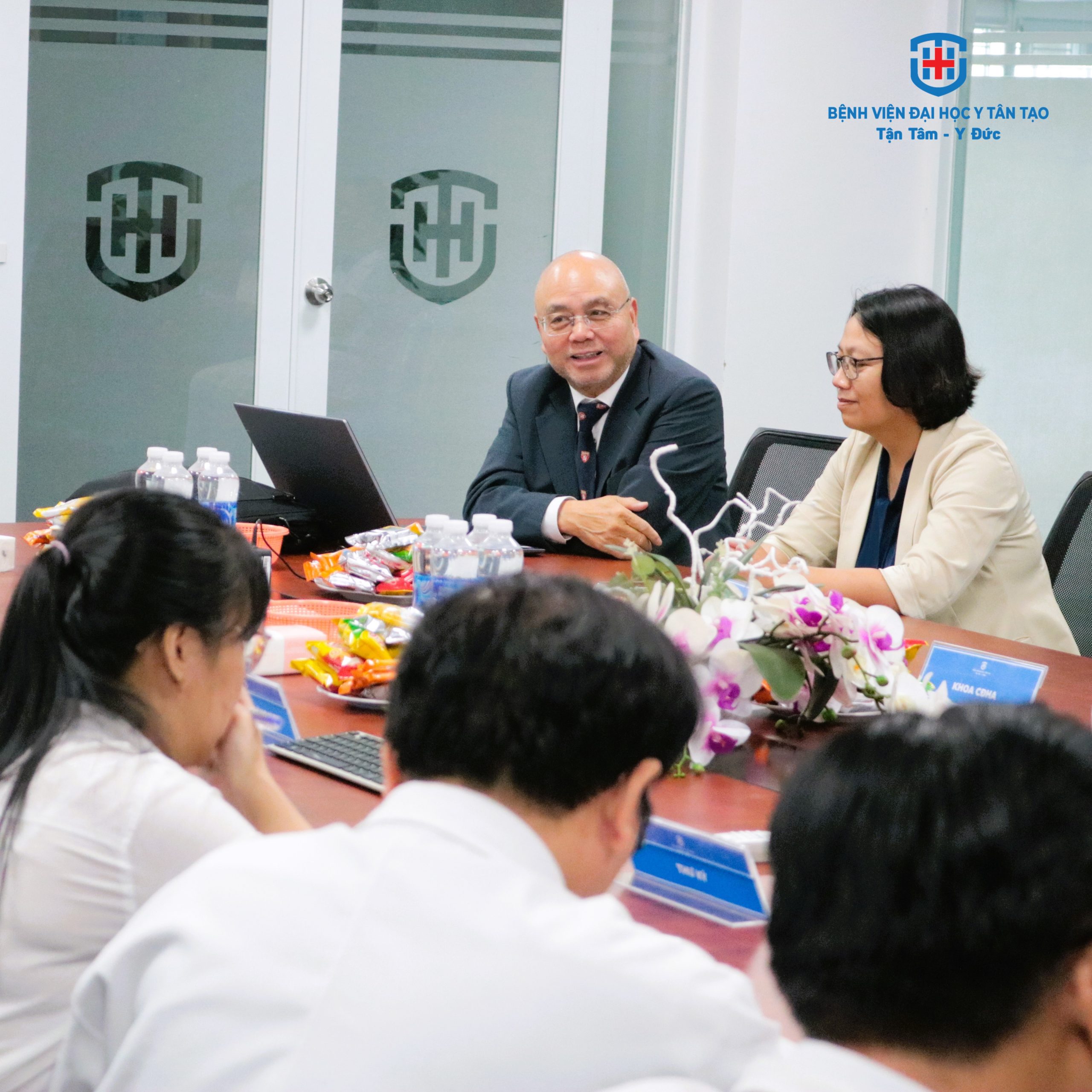 Tại buổi gặp gỡ, GS.BS Thạch Nguyễn cũng chia sẻ thông tin về hoạt động và chương trình đào tạo y khoa tiên tiến dành cho sinh viên Y khoa Đại học Tân Tạo tại Hoa Kỳ năm 2024 và khuyến khích việc thực hành nghiên cứu khoa học đến đội ngũ bác sĩ trẻ có nhiều định hướng mới tại Bệnh viện Đại học Y Tân Tạo.