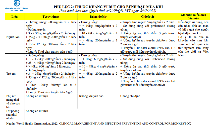 – Sử dụng thuốc điều trị đặc hiệu ở những trường hợp nặng và cơ địa đặc biệt (trẻ sơ sinh, người cao tuổi, người bị suy giảm miễn dịch,…) theo khuyến cáo của Tổ chức Y tế thế giới và các quy định của Việt Nam.