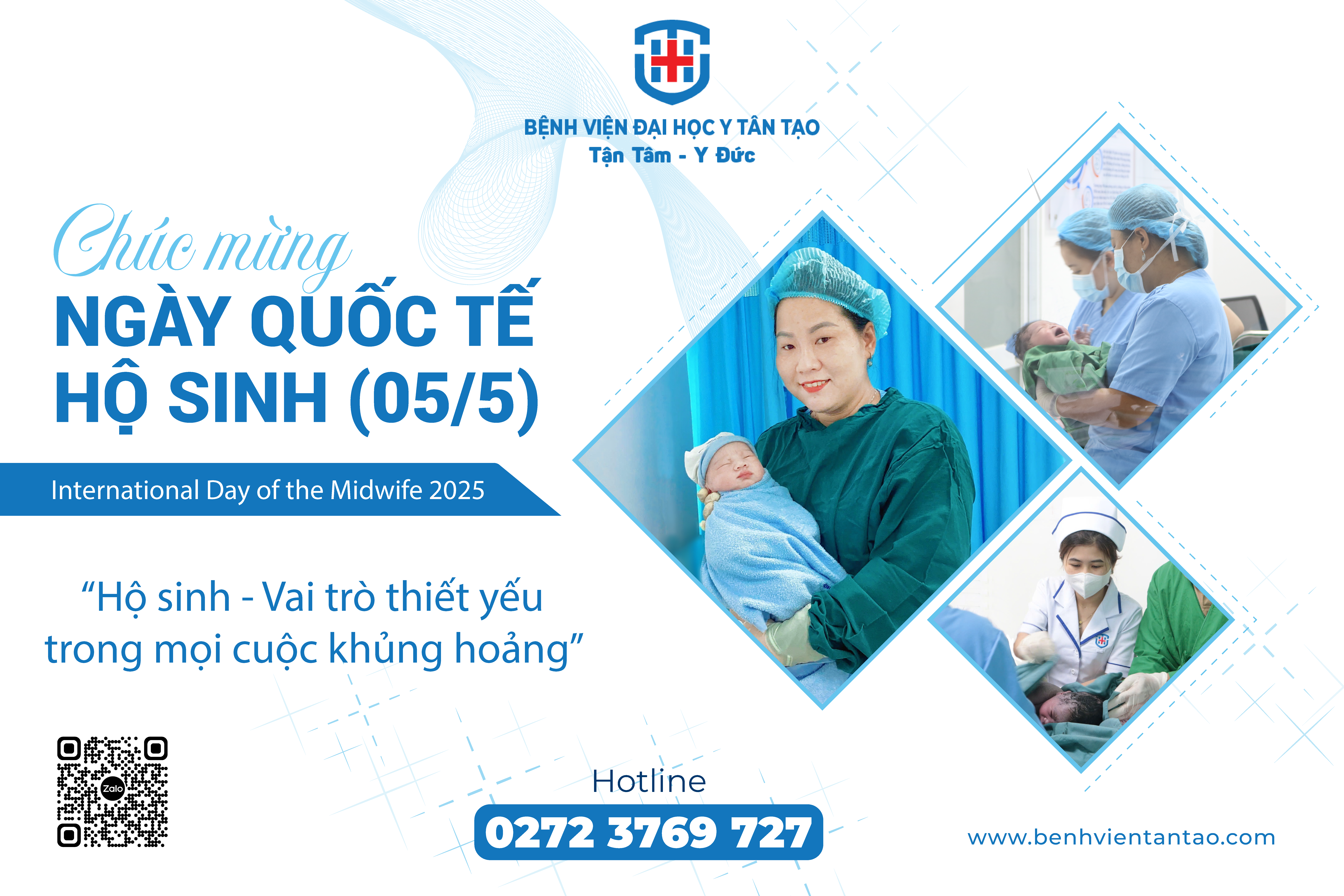 Bệnh viện Đại học Y Tân Tạo xin gửi đến toàn thể đội ngũ Hộ sinh lời chúc sức khỏe, hạnh phúc và luôn giữ vững ngọn lửa yêu nghề. Cám ơn các Anh/Chị đã tận tâm và góp phần quan trọng vào chất lượng dịch vụ và hình ảnh nhân văn của bệnh viện.