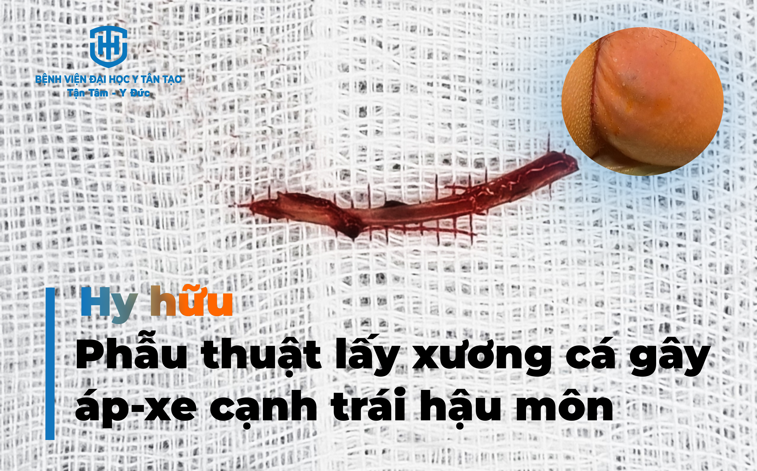 Vào ngày 18/5, Bệnh viện Đại học Y Tân Tạo đã thăm khám và phẫu thuật thành công cho bệnh nhân mắc phải dị vật gây áp-xe (abcès) cạnh trái hậu môn.