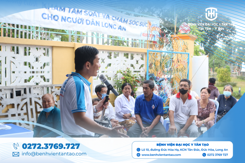 Tiếp nối chương trình Chung tay chăm sóc sức khỏe cộng đồng, Bệnh viện Đại học Y Tân Tạo kết hợp cùng Ban Cai quản Họ Đạo Thánh thất Đức Hòa tổ chức chương trình khám tầm soát sức khỏe và cấp thuốc miễn phí cho người dân có hoàn cảnh khó khăn và tín đồ Cao Đài trong khu vực.