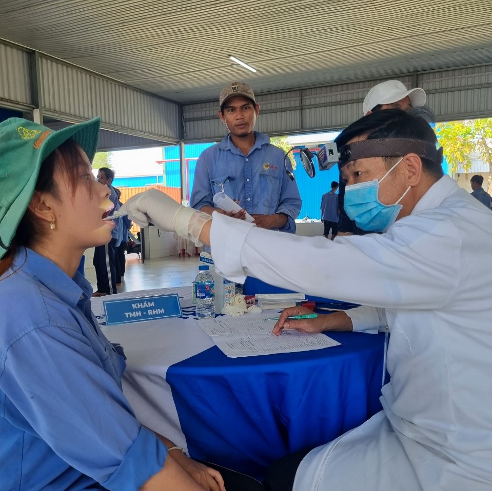 Tại buổi khám sức khỏe, người lao động được tiến hành xét nghiệm máu, đo huyết áp, khám răng hàm mặt, tai mũi họng, khám mắt, nội tổng quát, cân đo, siêu âm, ngoại da liễu, chụp X-quang…