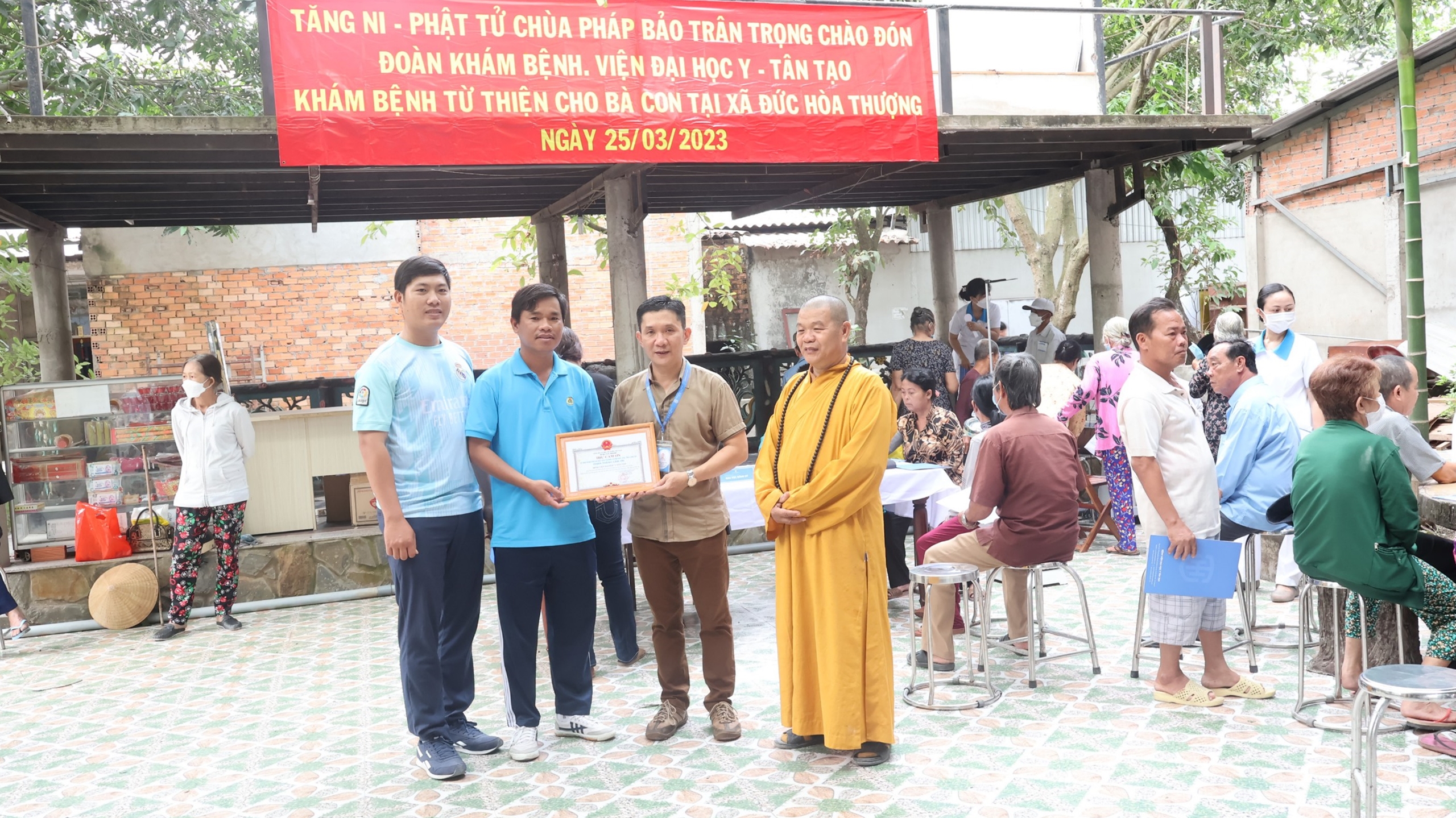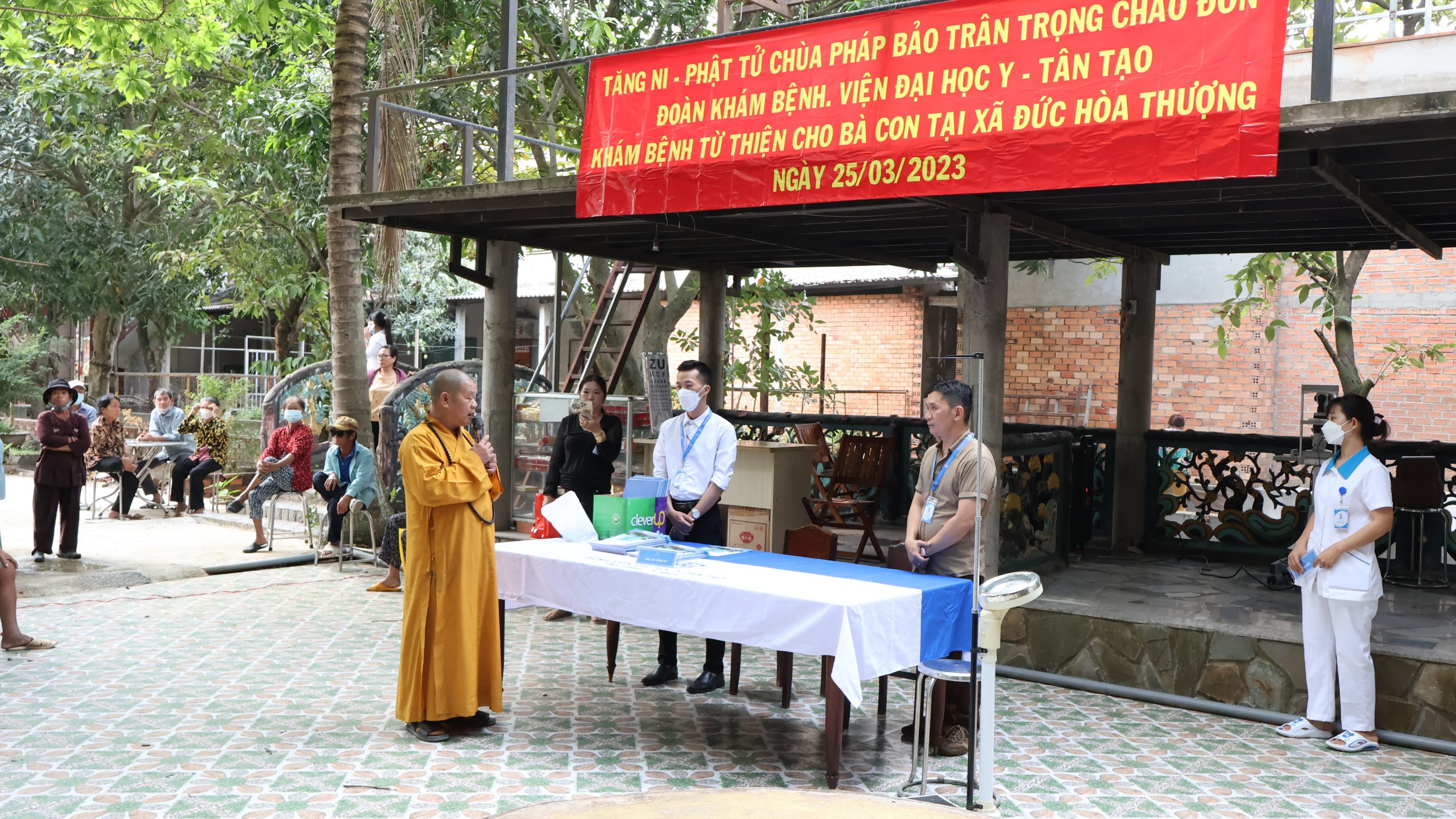 Ngày 25/3/2023, đoàn bác sĩ Bệnh viện Đại học Y Tân Tạo tổ chức khám sức khỏe miễn phí, tầm soát các bệnh lý nguy cơ và cấp phát thuốc miễn phí đến tăng ni, Phật tử tại Tổ đình Pháp Bảo, xã Đức Hòa Thượng, huyện Đức Hòa, tỉnh Long An.