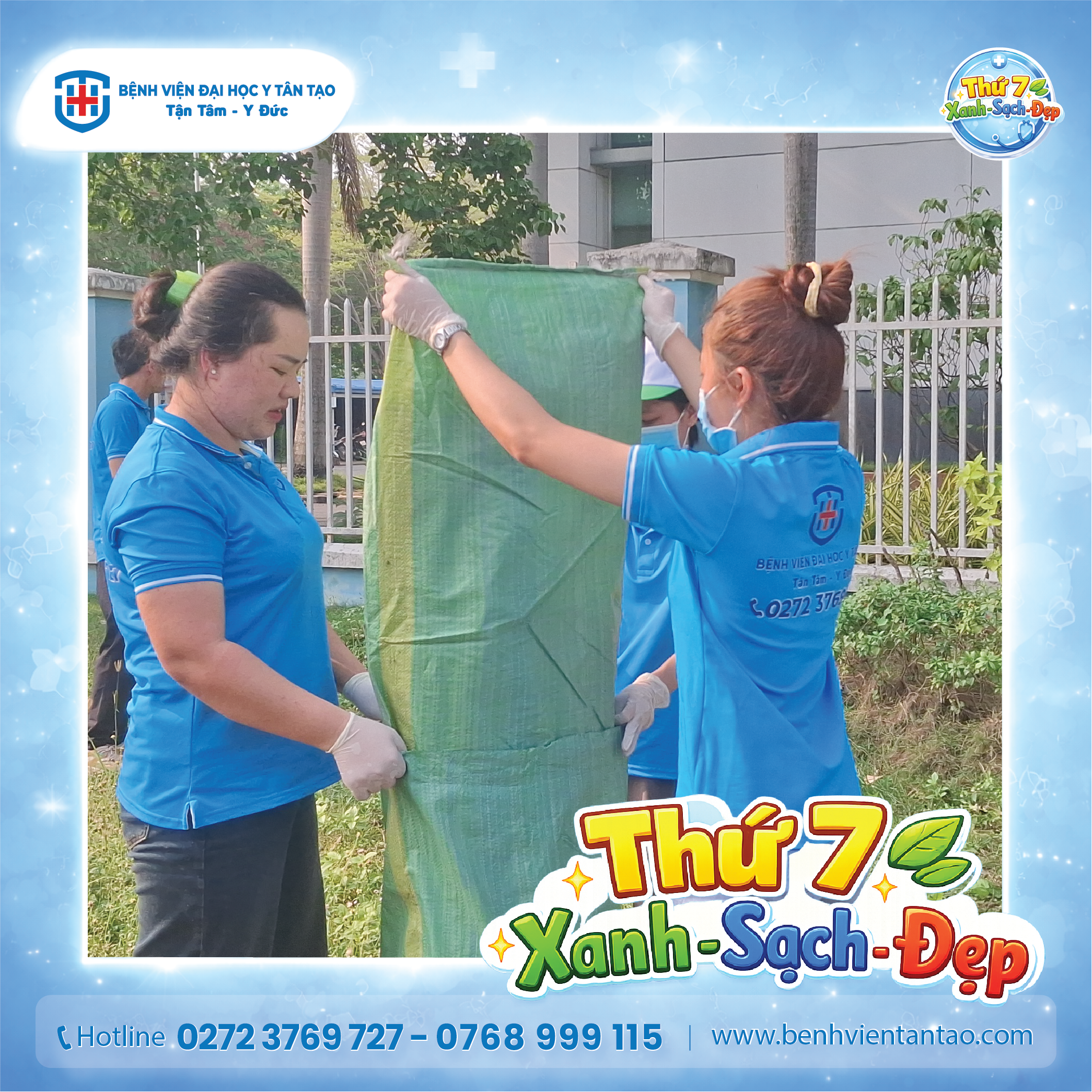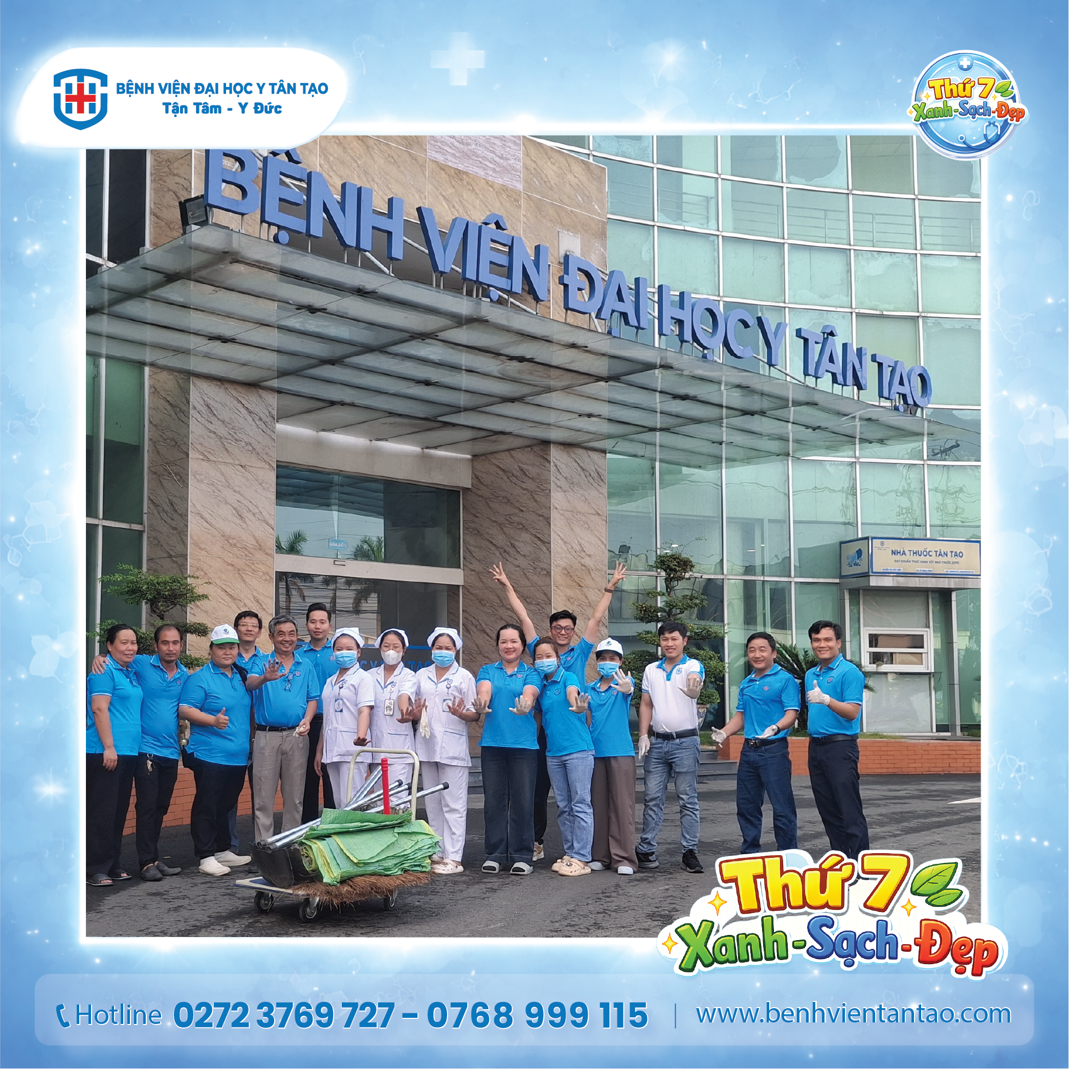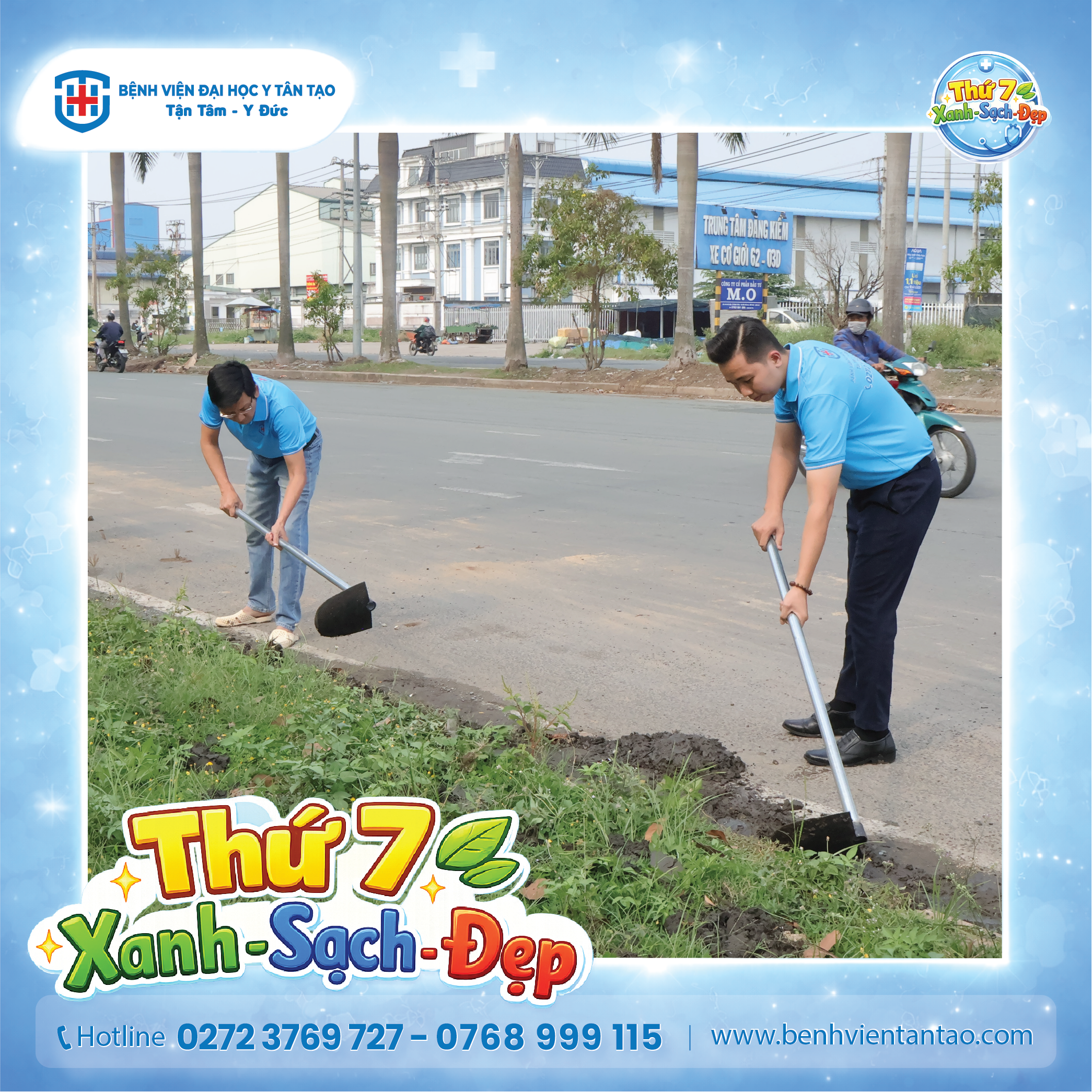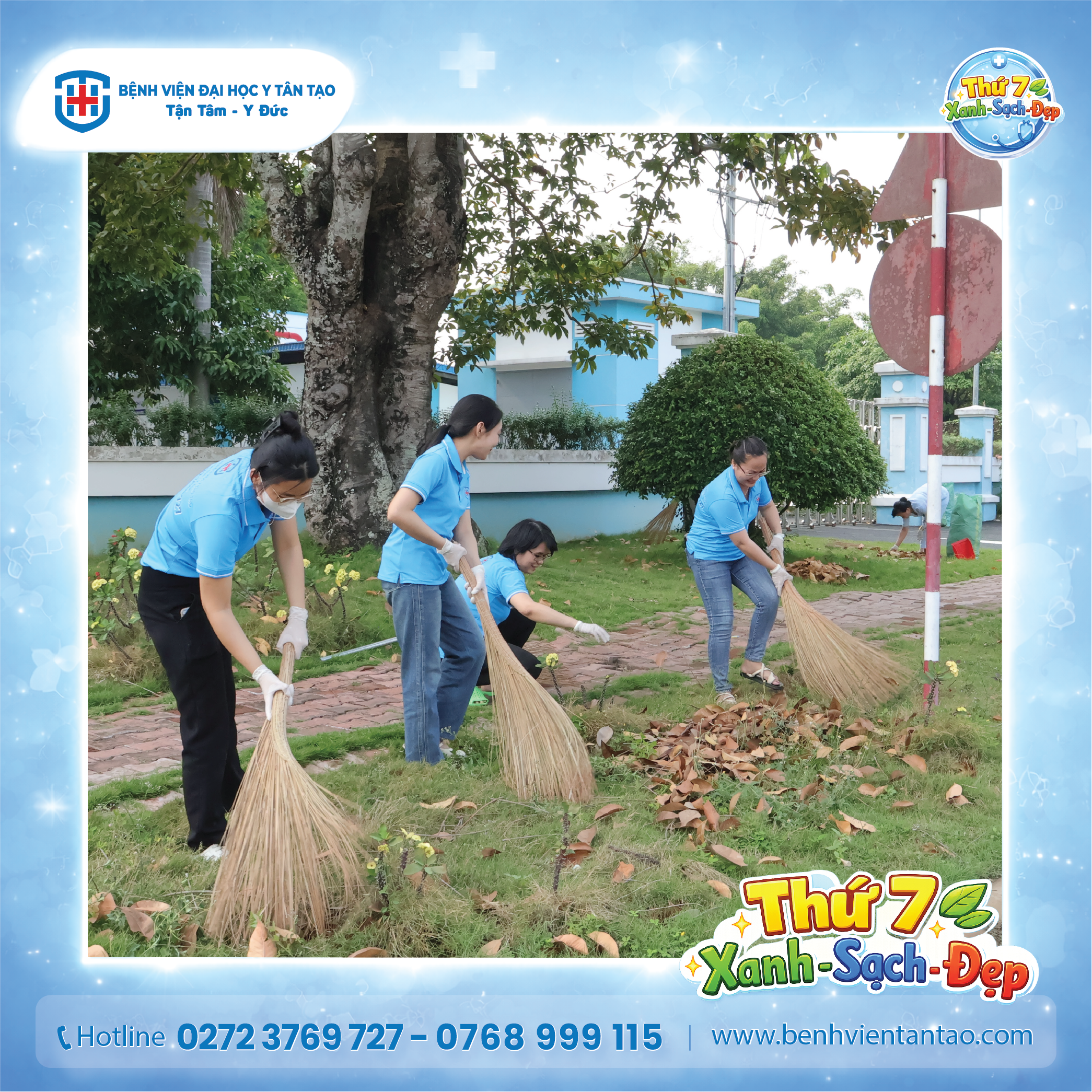 Nhằm xây dựng môi trường làm việc và khám chữa bệnh Xanh – Sạch – Đẹp, chiều thứ 7 hàng tuần, tập thể cán bộ, nhân viên Bệnh viện Đại học Y Tân Tạo cùng tham gia hoạt động dọn dẹp vệ sinh môi trường, chỉnh trang khuôn viên.