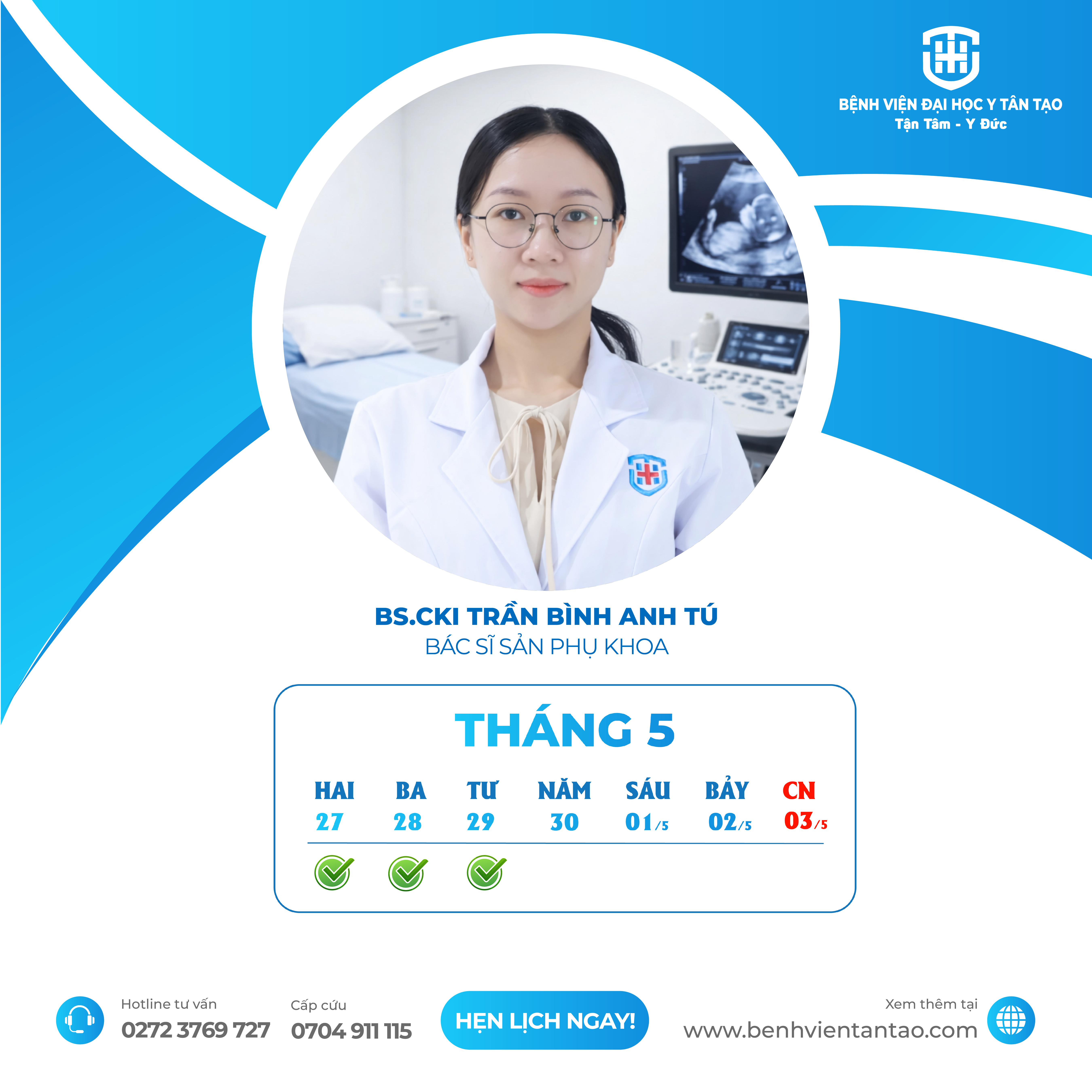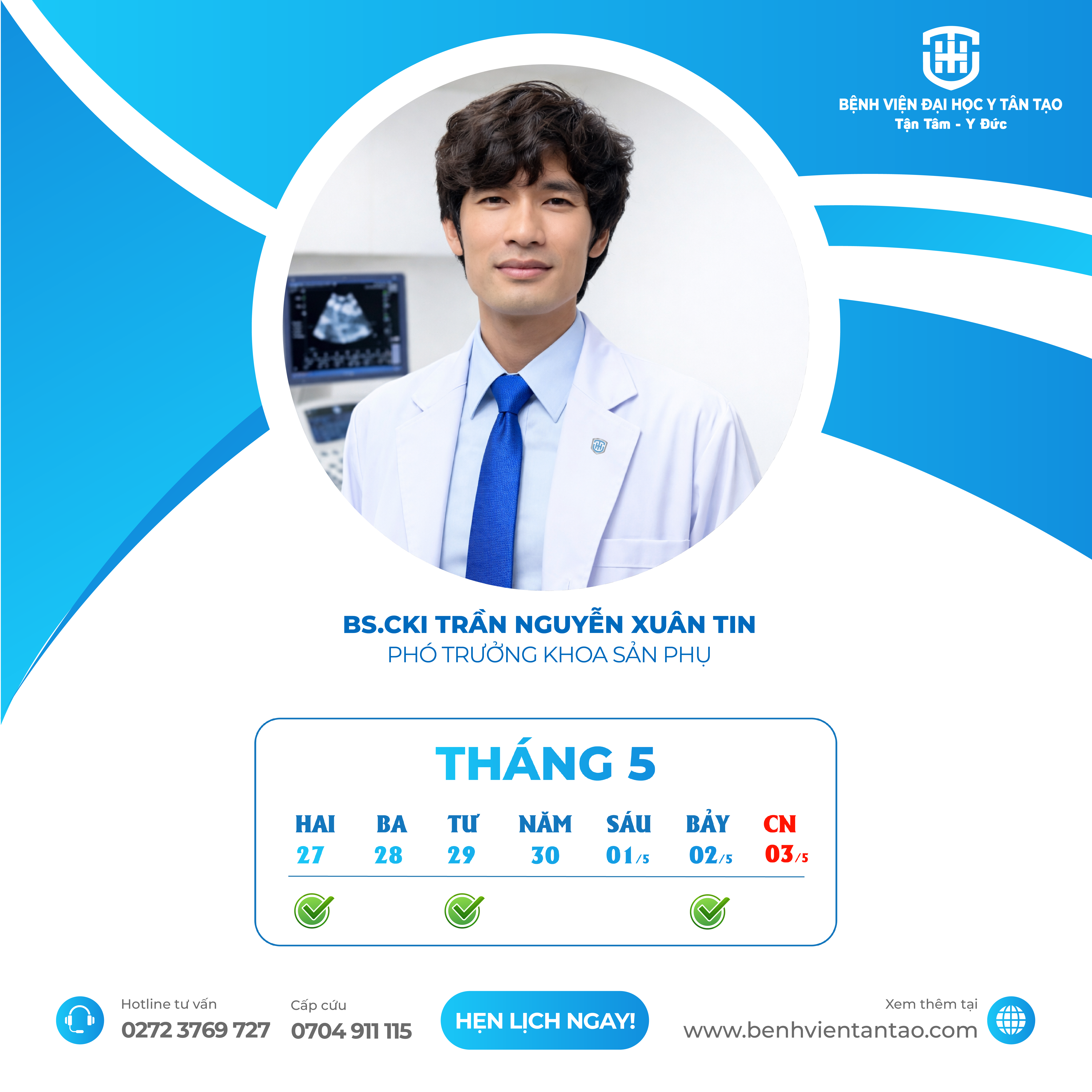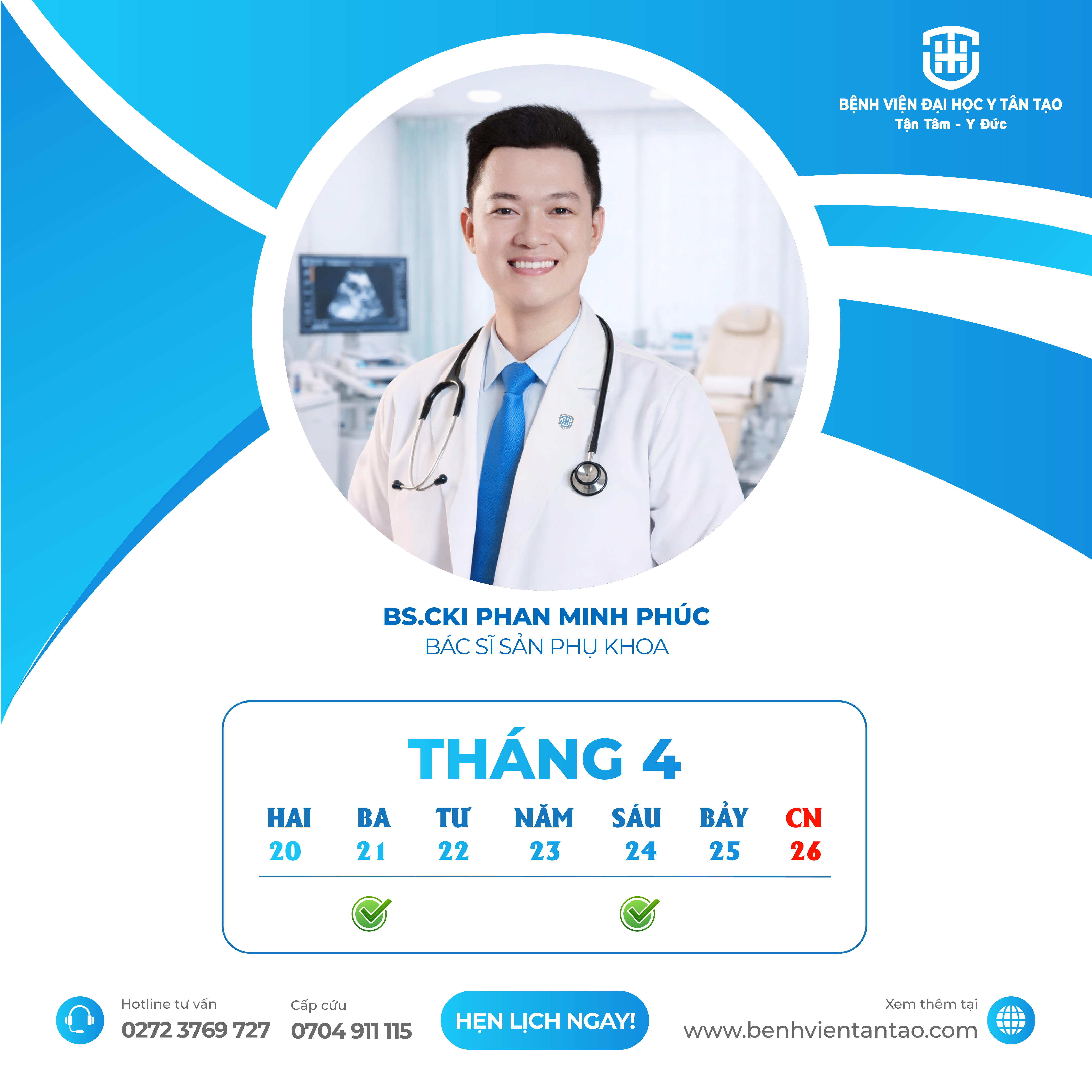 Khoa Sản Phụ – Bệnh viện Đại học Y Tân Tạo thông báo lịch khám bệnh và làm việc của Bác sĩ chuyên khoa Sản Phụ từ 27/4/2026 đến 03/5/2026.