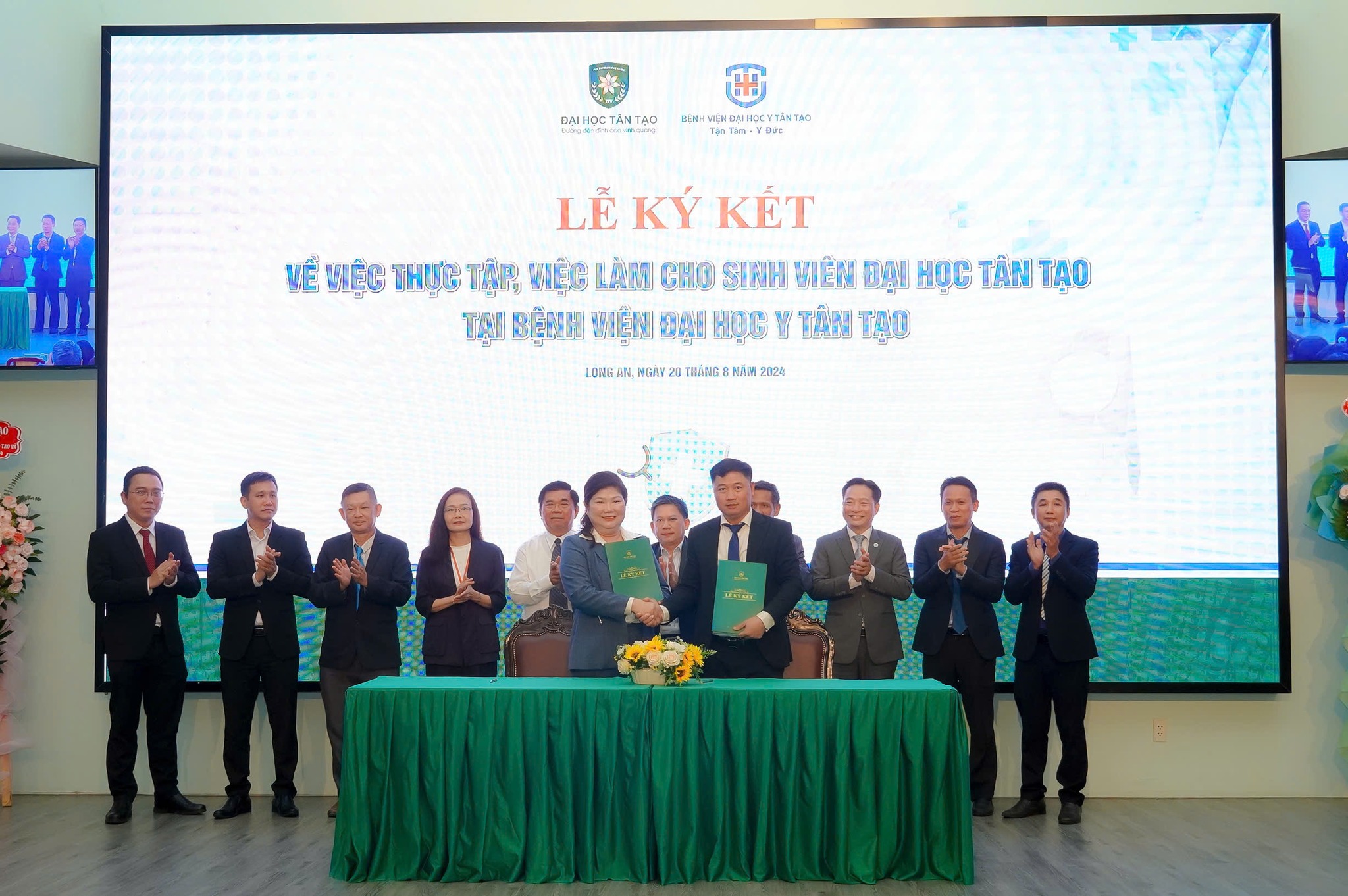 Nhằm phát triển chương trình đào tạo “Đại học doanh nghiệp”, tạo cầu nối để sinh viên tiếp cận doanh nghiệp ngay từ năm nhất, ngày 20/08/2024, Đại học Tân Tạo (TTU) đã tổ chức Lễ ký kết Thỏa thuận hợp tác với các công ty thành viên của Tập đoàn Tân Tạo và Bệnh viện Đại học Y Tân Tạo (TUH) về việc thực tập, làm việc cho sinh viên của trường.