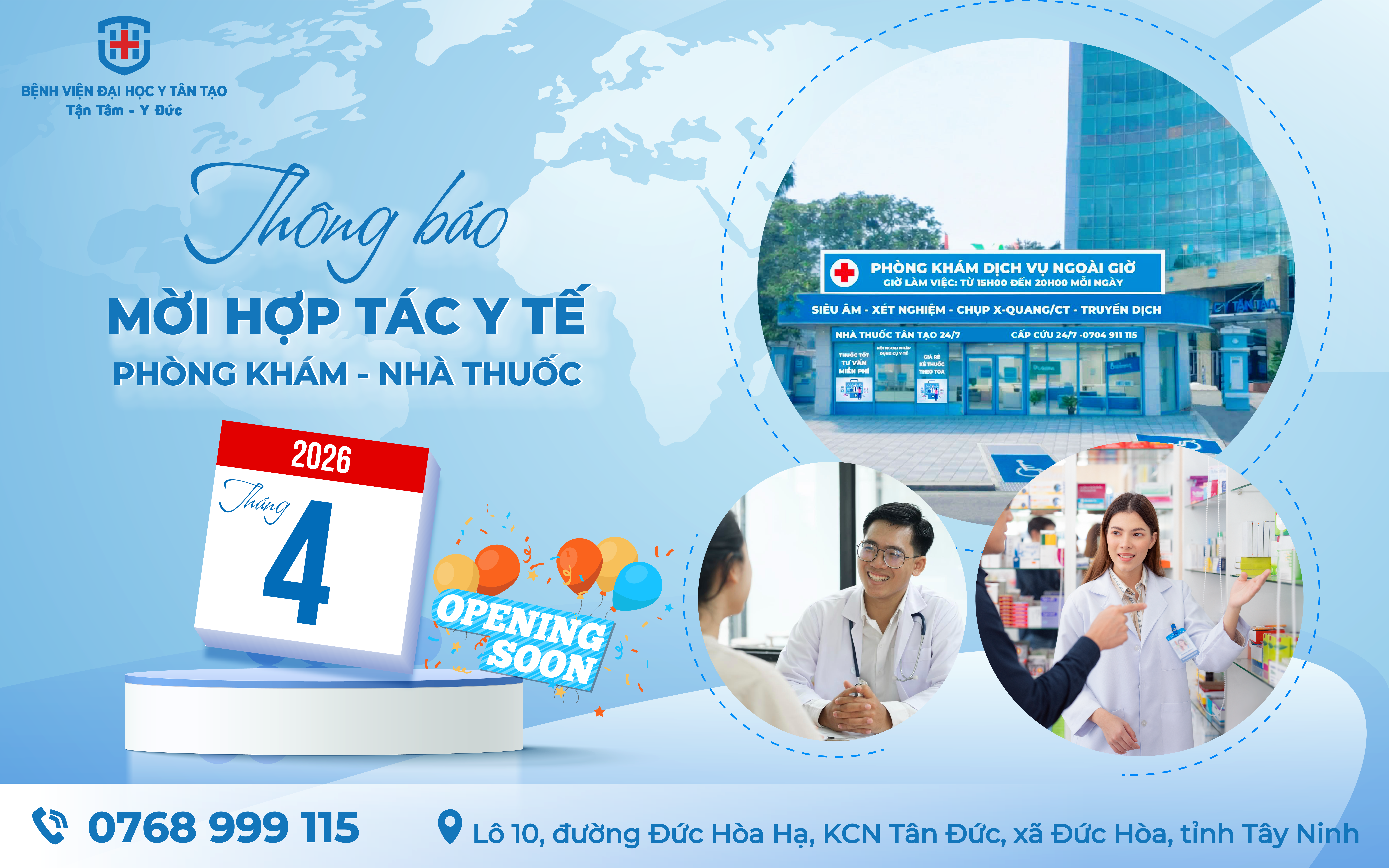 📩 Quý đơn vị và cá nhân quan tâm vui lòng liên hệ Bệnh viện Đại học Y Tân Tạo để trao đổi và hợp tác.