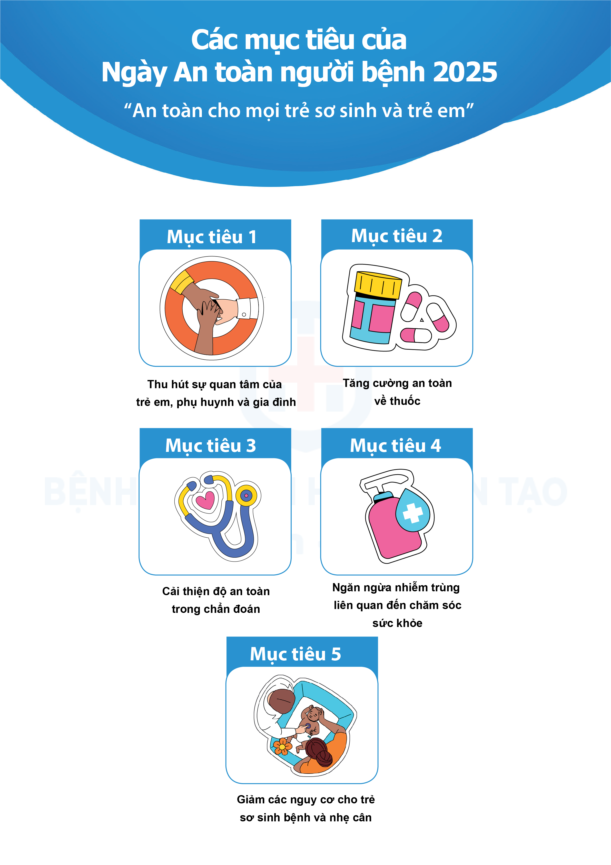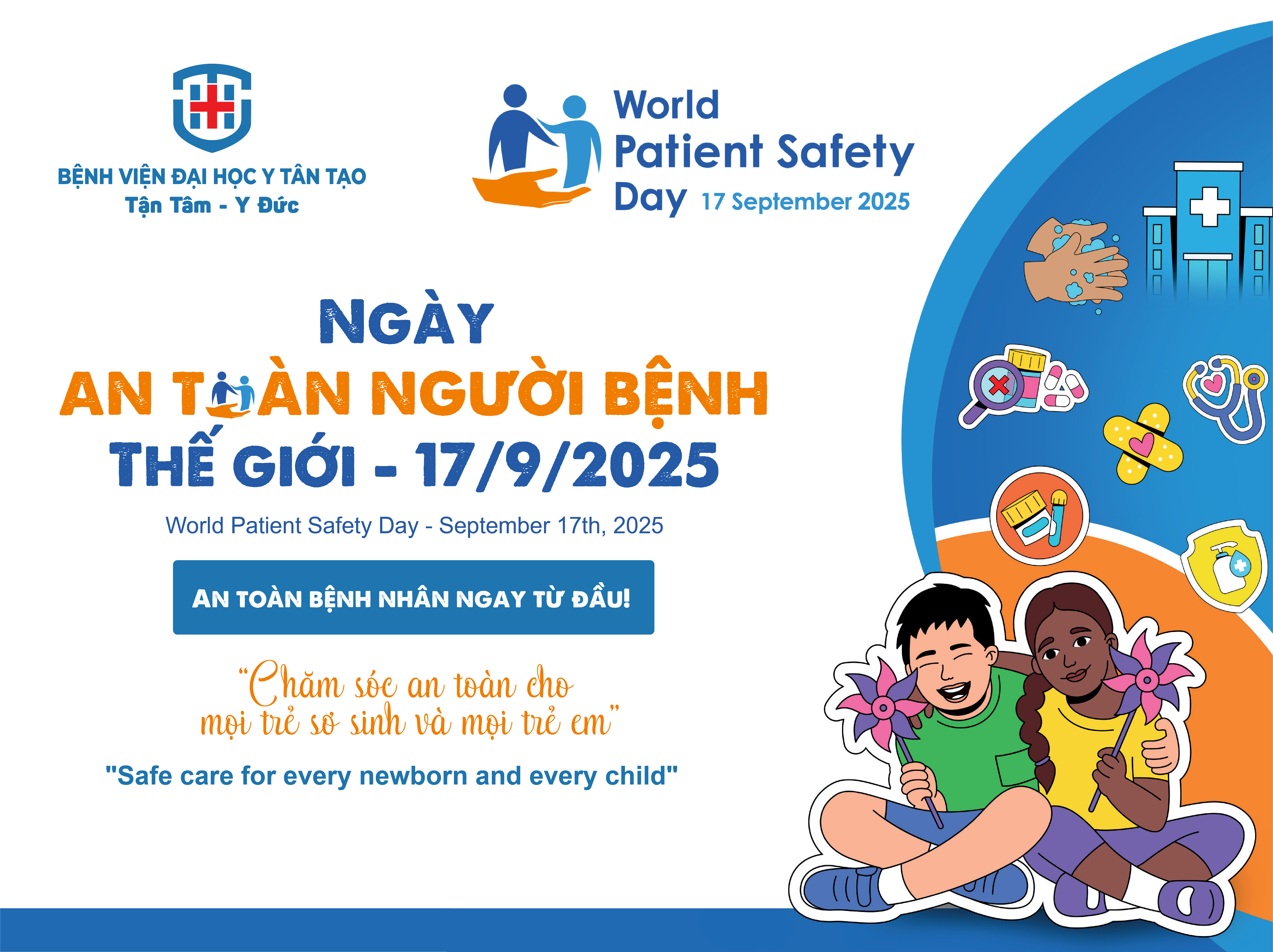 Chủ đề Ngày An toàn Bệnh nhân Thế giới năm 2025 là “Chăm sóc an toàn cho mọi trẻ sơ sinh và mọi trẻ em” nhằm nâng cao nhận thức tính dễ bị tổn thương của nhóm tuổi này trước các rủi ro và tác hại do chăm sóc không an toàn gây ra.