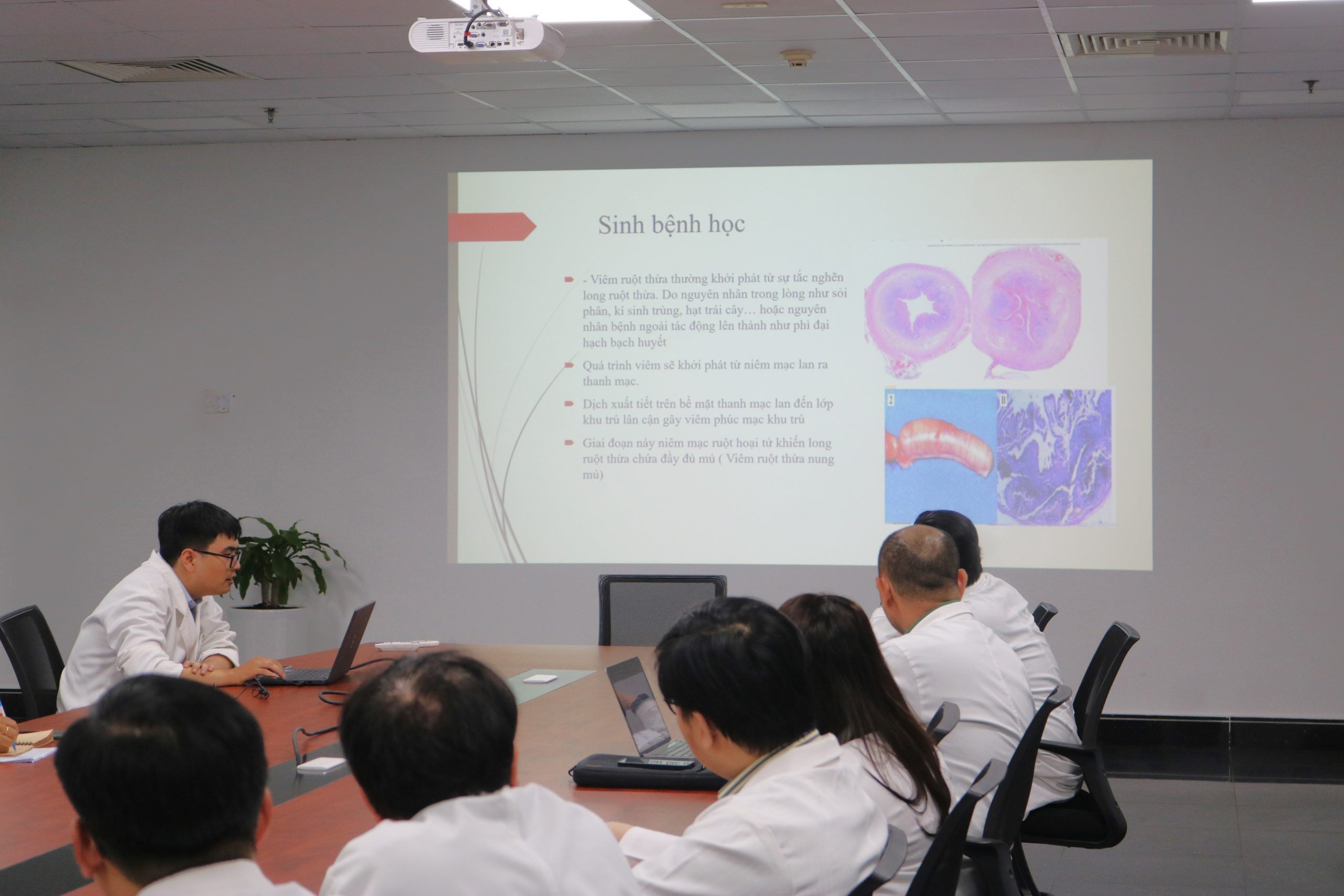 Tại buổi sinh hoạt, BS. Phạm Tùng Lâm đã trình bày đặc điểm sinh bệnh học của viêm ruột thừa cấp, một số bệnh cảnh đặc biệt, chẩn đoán phân biệt viêm ruột thừa cấp và các biến chứng với một số bệnh khác, nguyên tắc và phương pháp điều trị ngoại khoa.