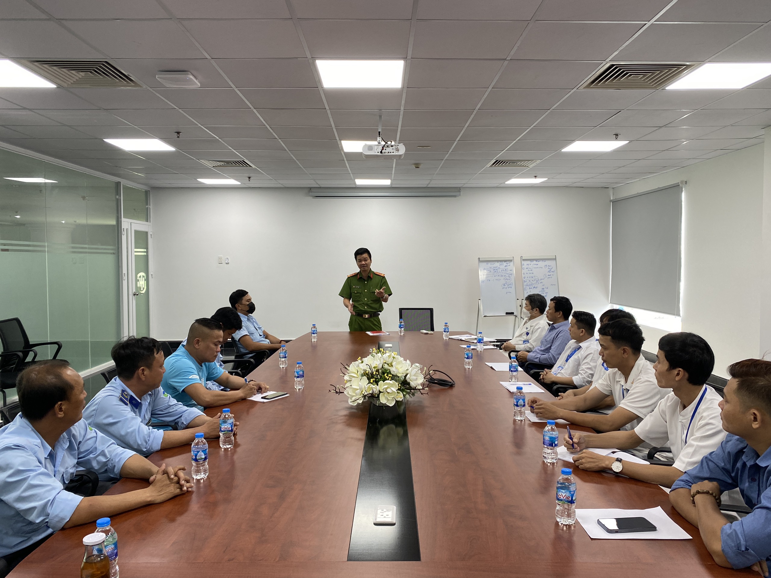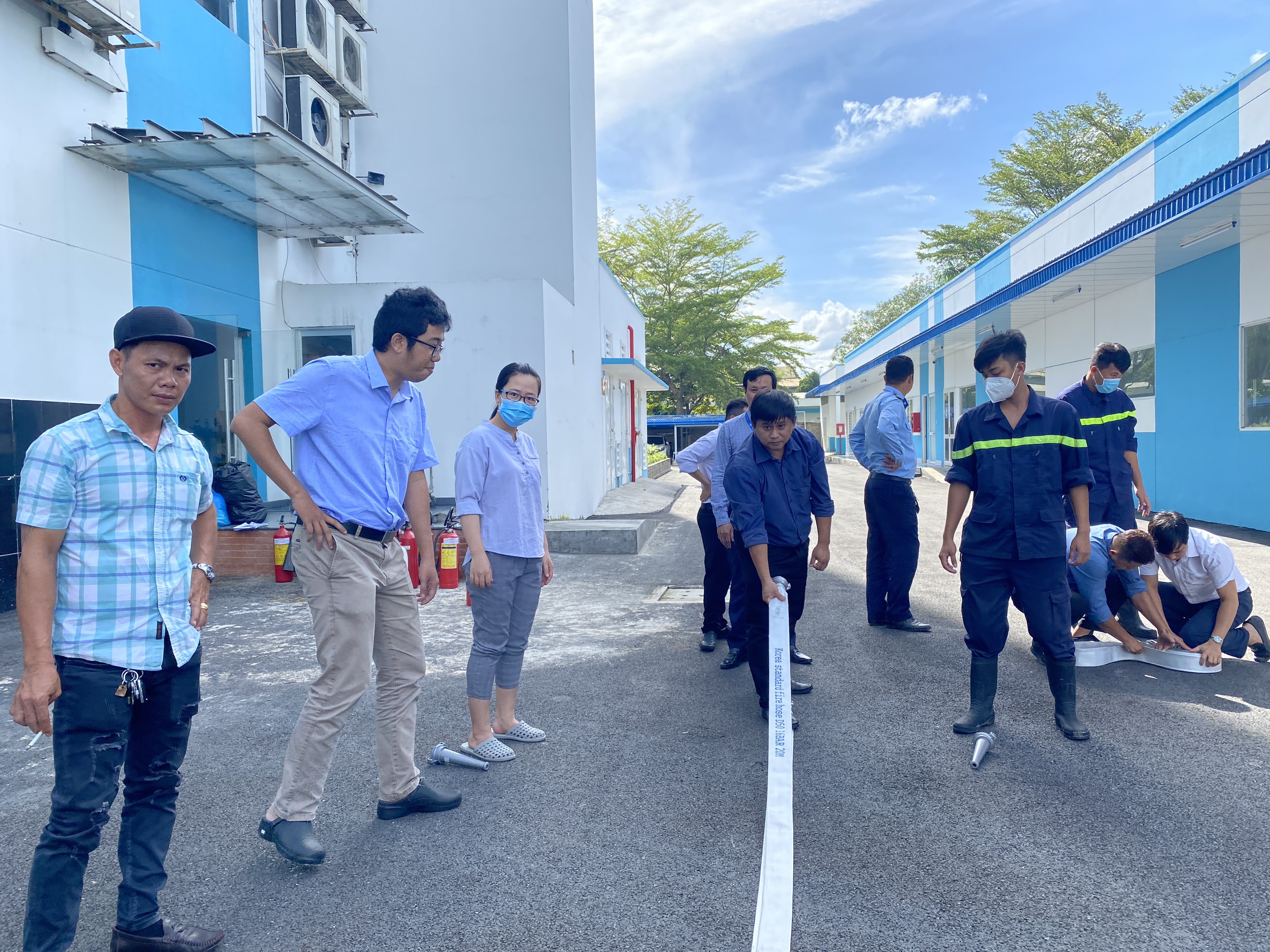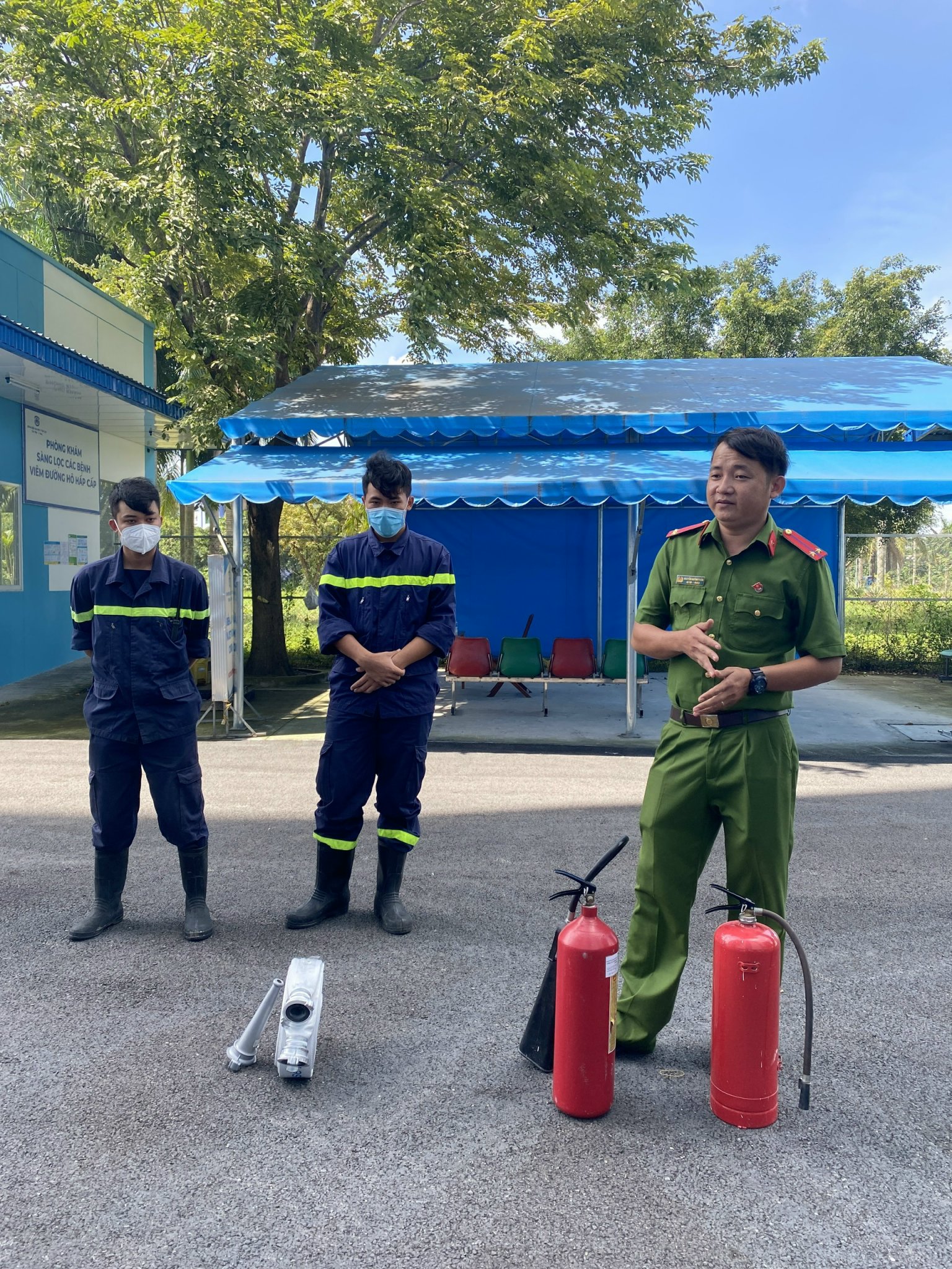 Sau giờ lý thuyết, học viên được được thực hành cách sử dụng các phương tiện bình bột, bình khí CO2 để dập tắt đám cháy và cách xử lý nhanh tình huống có thế xảy ra, 100% học viên đã sử dụng thành thạo các phương tiện chữa cháy.