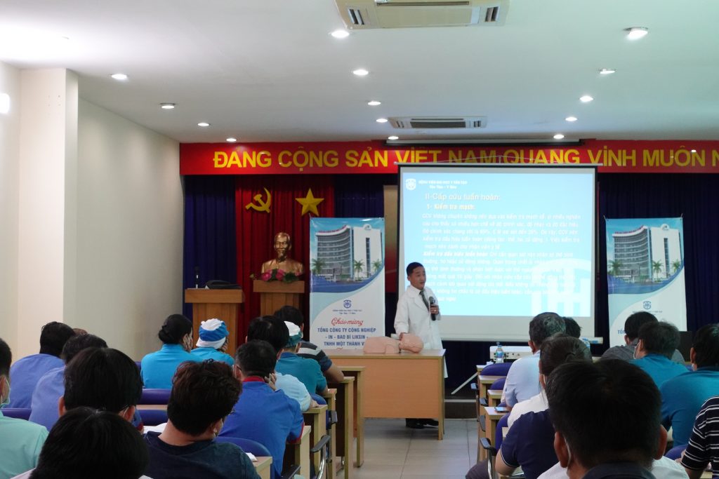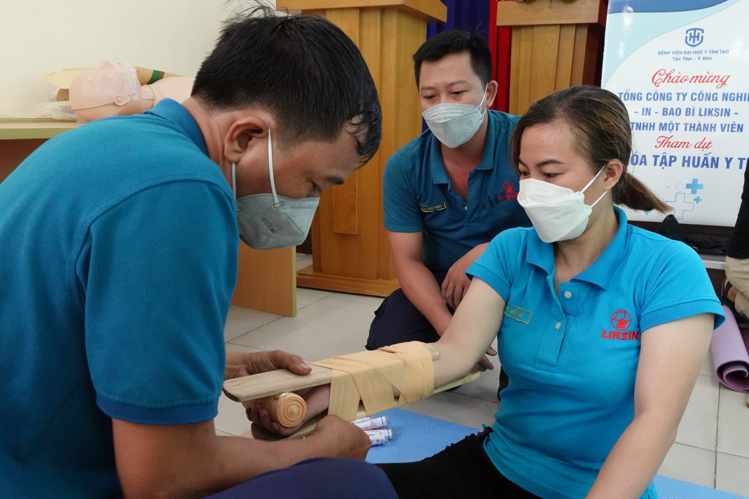 Ngày 20/5, Bệnh viện Đại học Y Tân Tạo tổ chức khóa tập huấn y tế, sơ cấp cứu tại Tổng công ty Công nghiệp – In – Bao bì Liksin – TNHH Một thành viên, KCN Tân Đức, Đức Hòa, Long An.