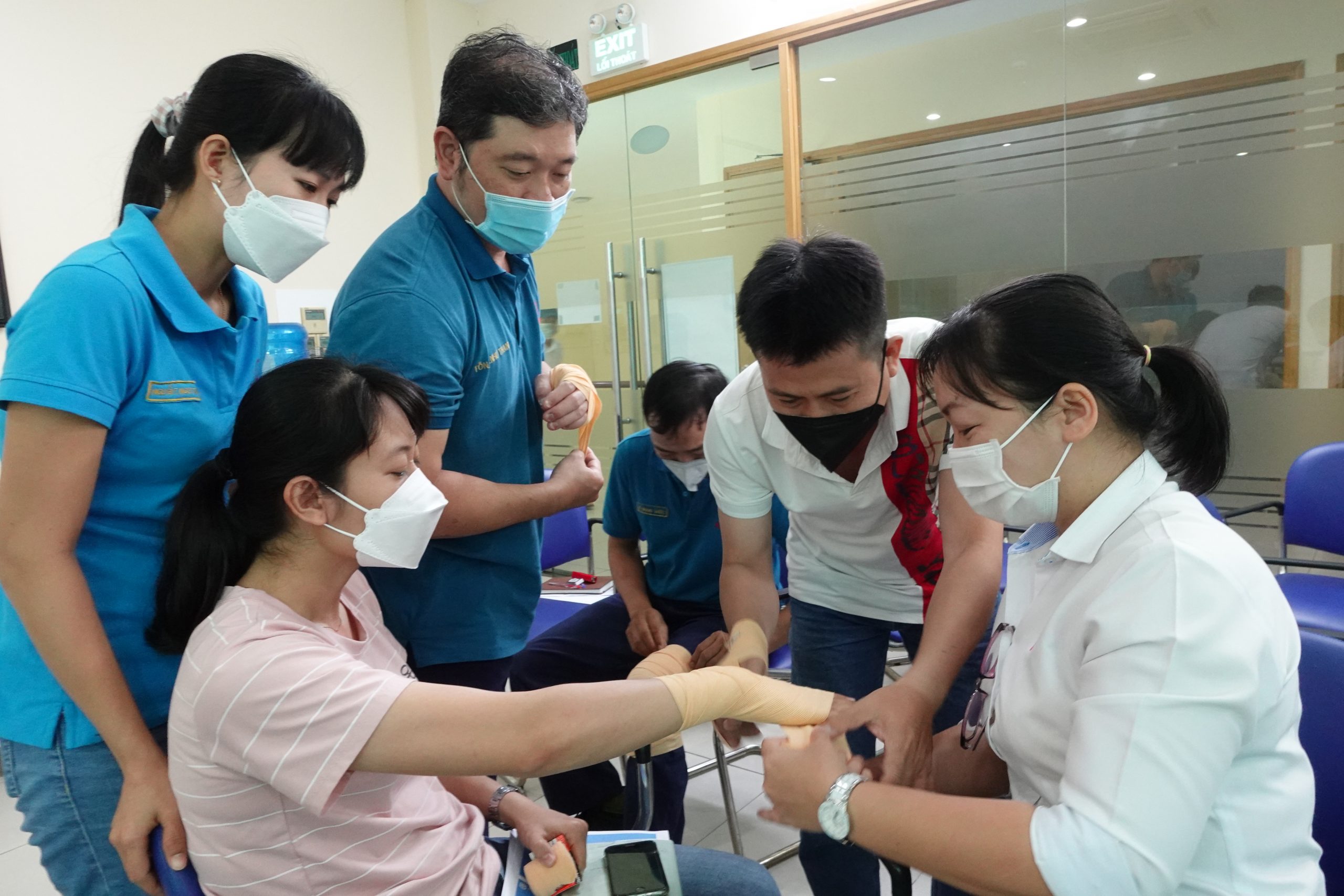 Nhân viên Liksin thực hành sơ cấp cứu. Ảnh: BVĐHYTT