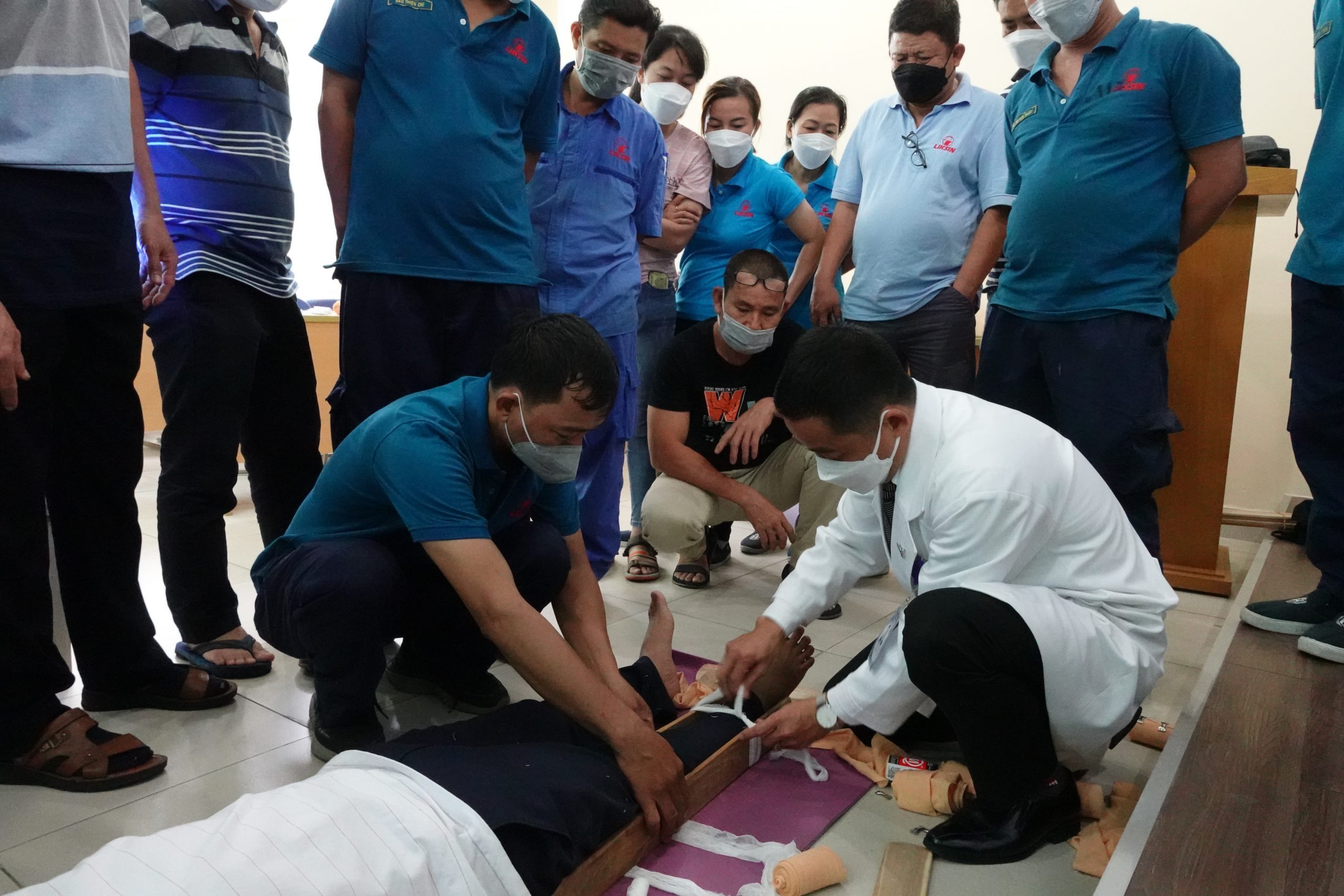 Khóa tập huấn sơ cấp cứu tại Tổng công ty Liksin. Ảnh: BVĐHYTT