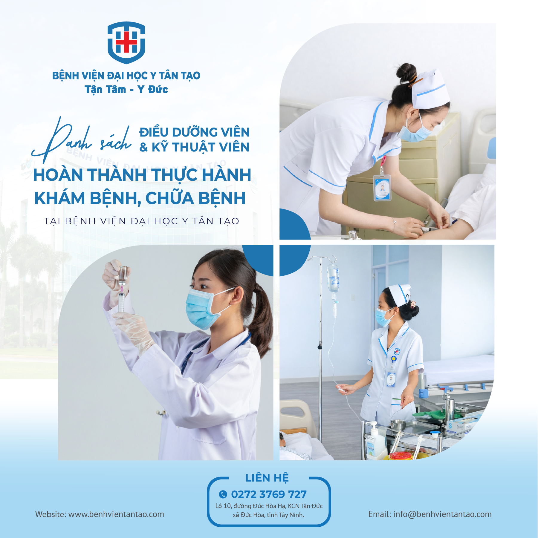 Bệnh viện Đại học Y Tân Tạo công bố danh sách người đã hoàn thành quá trình thực hành khám bệnh, chữa bệnh để cấp Giấy phép hành nghề tại Bệnh viện tháng 3 năm 2026.