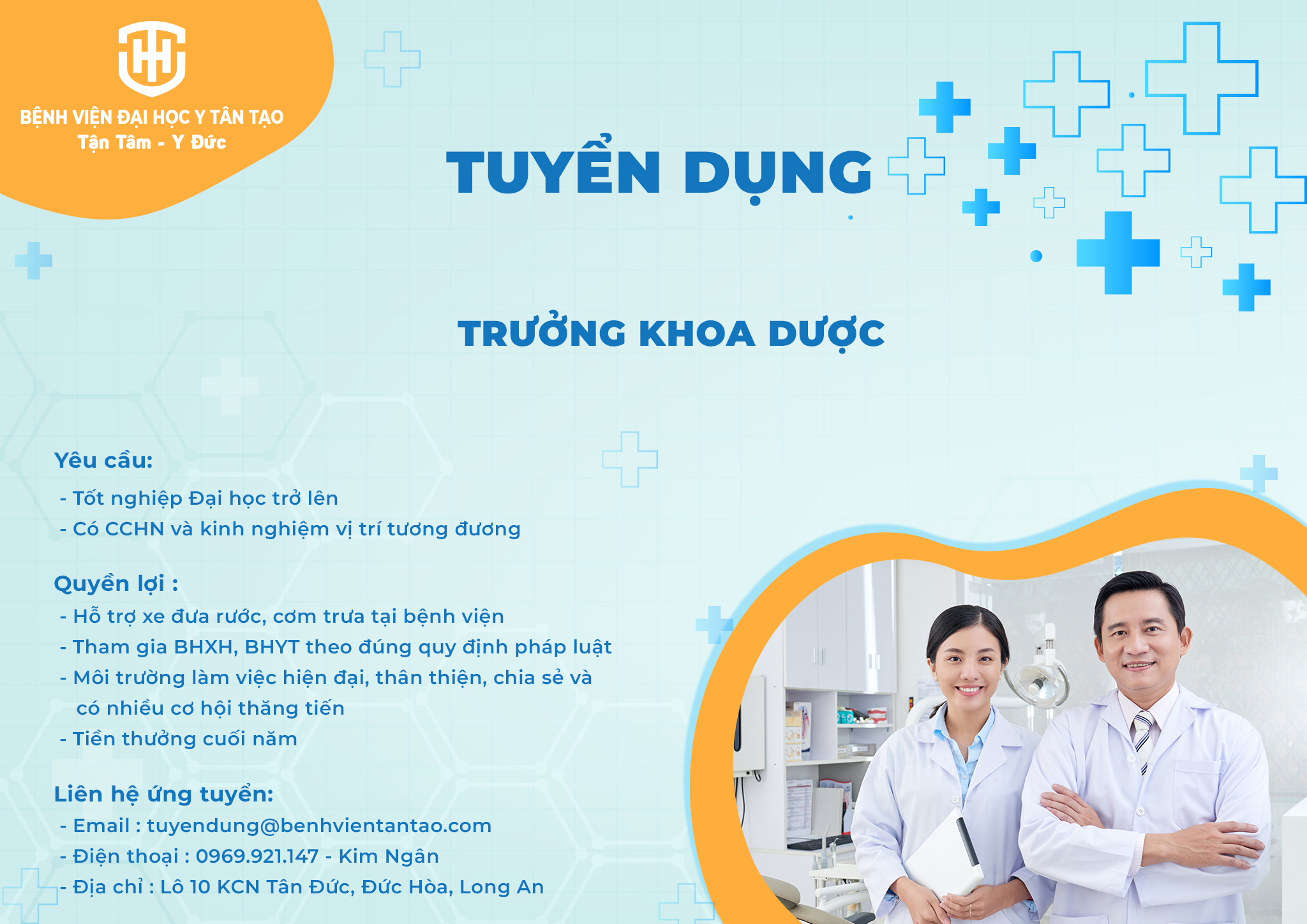 Bệnh viện Đại học Y Tân Tạo có nhu cầu tuyển dụng trưởng khoa Dược