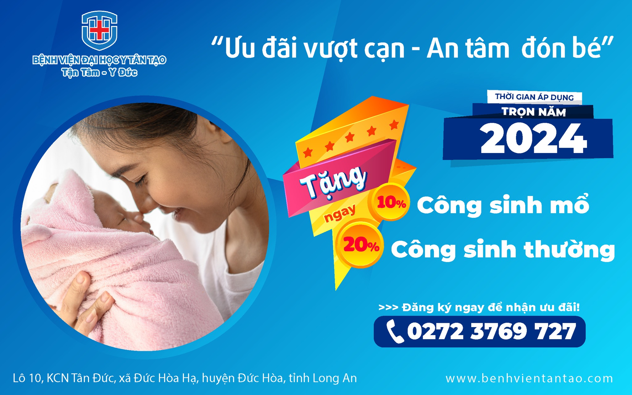 Để giúp mẹ bầu có thể mạnh khỏe, an tâm đón bé yêu chào đời, Bệnh viện Đại học Y Tân Tạo xin gửi đến các mẹ bầu và gia đình Chương trình ưu đãi với các dịch vụ sanh thường, sanh mổ trọn gói của bệnh viện.