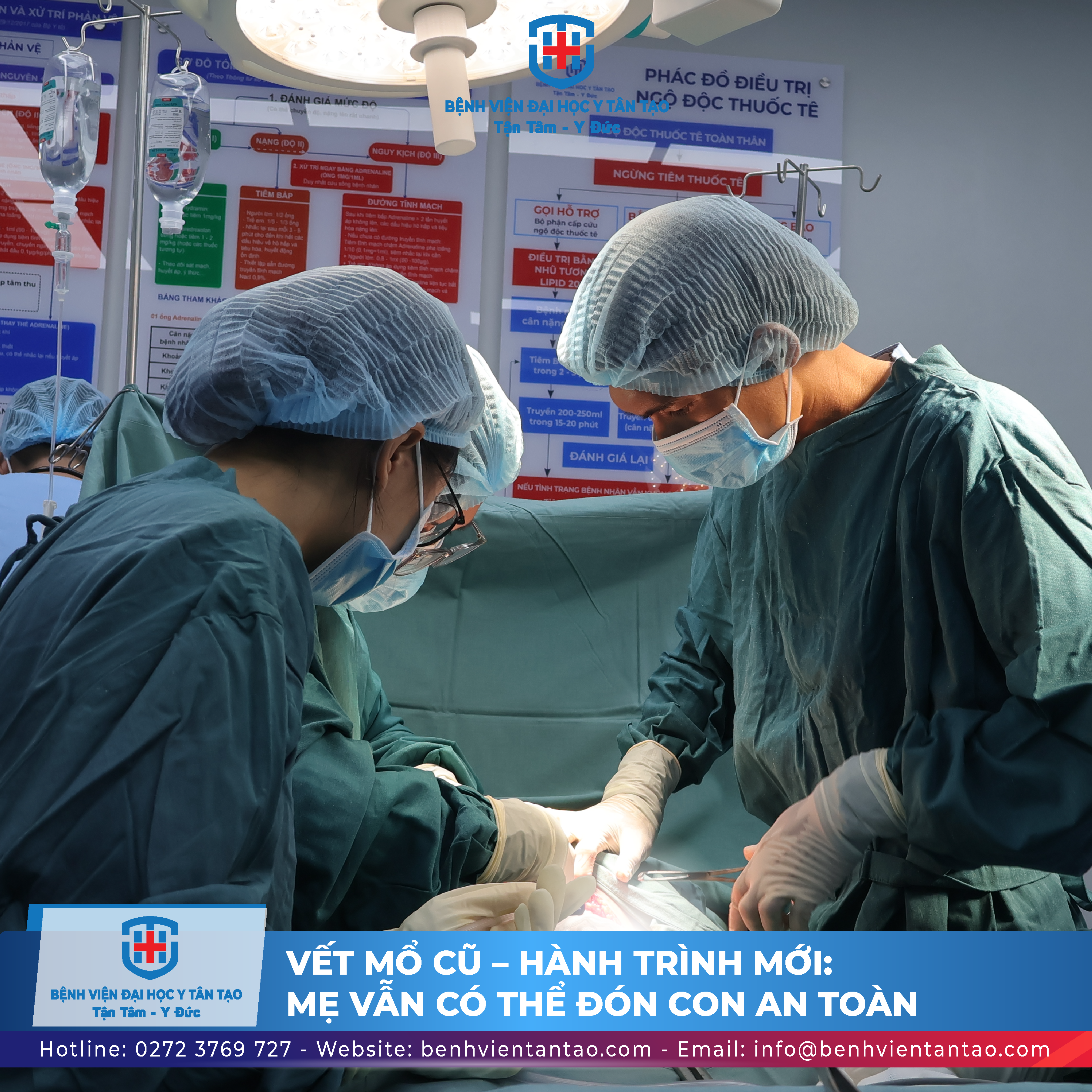 Sáng ngày 15/7/2025, Bệnh viện Đại học Y Tân Tạo thực hiện thành công ca mổ lấy thai lần 2 trên nền vết mổ cũ, chào đón bé gái kháu khỉnh 2.300gr, Apgar 8/9.